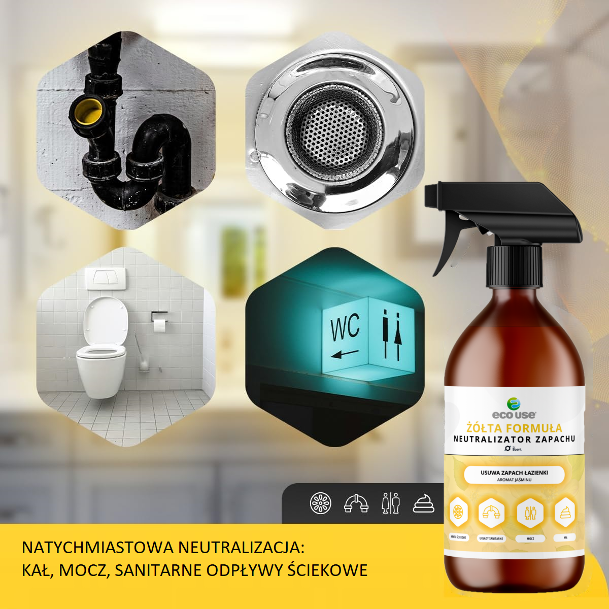 Neutralizator zapachu moczu, kału, toalety SCENT SPRAY 75ml - FORMUŁA ŻÓŁTA (Jaśmin)